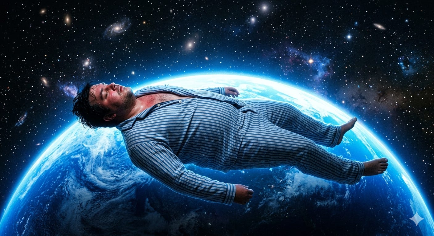 A simțit o cădere într-un gel răcoros și pentru prima data în întreaga săptămână, a lăsat o umbră plăcută să îi atingă tâmplele, să îi șteargă fruntea, să îi răcească ochii și să continue să mărșăluiască, din ce în ce mai jos, pe gât, spre piept și membre, ca într-un final să nu mai simtă oboseală și durere. Și-a spus Acum e bine! și nu i-a fost frică, căci de undeva de deasupra lui încă se mai auzea un interviu cu invitatul emisiunii de după Radiojurnal. Curând, ochii lui, care în mod normal nu reușeau să distingă decât lumina de întuneric, au început să prindă câteva sclipiri, de parcă i-ar fi frecat cu pumnii, puternic, iar acum vedea modele. Numai că sclipirile au început să crească la număr și să pară distante una de cealaltă, mici și multe, mărunte și mișcătoare, de parcă s-ar fi aflat într-un balon negru pe care l-ar fi umflat cu respirațiile lui. Care respirații? Căci acum nu se mai simte congestionat, iar balonul se extinde și odată cu el și sclipirile care îi îmbracă pereții. Și-a dat seama că, pentru prima dată după mai bine de treizeci de ani de la orbirea sa, privea stelele. Și ridicându-și capul a fost mirat să se vadă așa cum eu mă văd și tu te vezi, dimineața, în pat, sub pilotă, sau cearșaf, mai întâi pieptul și apoi burta și nu în ultimul rând, vârfurile picioarelor. Și dincolo de ele o puzderie de constelații iar Marian plutea acum pe spate, prin Univers, înconjurat de o lumină albastră a planetei.